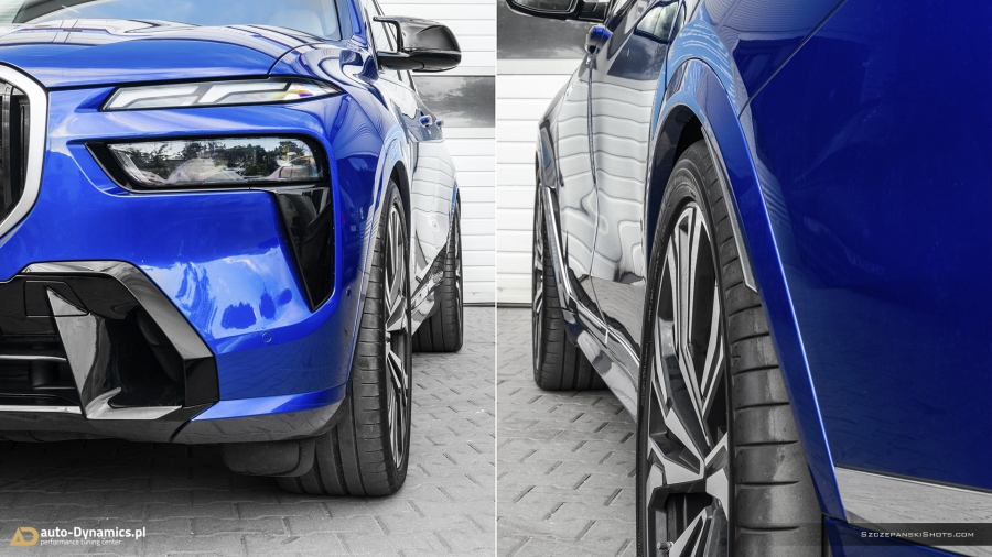 Final touch modyfikacji charakteryzujących się stylem OEM+ to montaż aluminiowych, srebrnych dystansów poszerzających [niemieckiej firmy Eibach] wraz z kompletem adekwatnie dłuższych śrub. Montaż pierścieni dystansujących pozwolił zrównać, fabryczne, 23" felgi z linią błotnika i idealnie wypełnić nadkola - stawiając tym samym przysłowiową „kropkę nad i” projektu X7. #WiderBetterByAD
