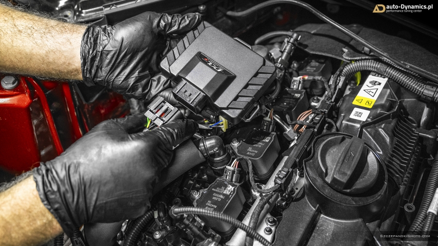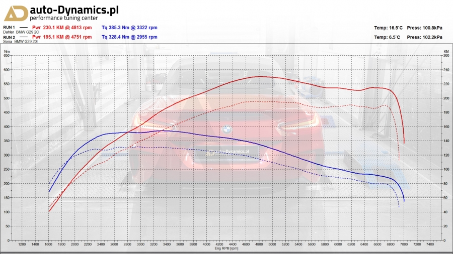 Krystalizując precyzyjne założenia koncepcyjne całego projektu Z4, w pierwszej kolejności popracowaliśmy nad radykalną poprawą akustyki bawarskiego roadster’a. Korekta barwy dźwięków i tonów generowanych przez pojazdy uposażone fabrycznie w ekologiczne filtry OPF / GPF nie jest zadaniem trywialnym i prostym. Szczególnie w przypadku konieczności pozostawienia ów ekologicznych filtrów w nienaruszonej formie, choćby z tytułu szeregu aspektów gwarancyjnych tudzież homologacyjnych. Przemianowanie całkowicie wykastrowanej z akustyki przez uprzednio wspomniane filtry, jednostki kodyfikowanej przez BMW jako B48B20B rozpoczęliśmy od zastąpienia szalenie restrykcyjnego, seryjnego układu wydechowego – jego sportowym zamiennikiem od naszego wieloletniego partnera – manufaktury ArcHouse. Zainstalowany w Z4 przez zespół #AD układ wydechowy stanowi kompletacja zawierająca wysoko przepustowy, sportowy tłumik końcowy z zaimplementowanym systemem zaworów / przepustnic / klap których pracą to zawiaduje on-board’owy komputer [sterownik / ecu] BMW [trybo eco / comfort – zawory zamknięte (tryb cichszy) i sport / sport+ - zawory otwarte (tryb głośniejszy)] oraz cztery fenomenalnie prezentujące się końcówki wykończone w kolorze czarnego połysku które to jednocześnie, dzięki swoim pokaźnym rozmiarom [4 x 89mm] idealnie wypełniły otwory w tylnym dyfuzorze który to zaimplementowaliśmy z modelu M40i ażeby w koherentnym do stylu pojazdu, pomieścić poczwórne końcówki nowego systemu wydechowego. Pracujące w trybie zamkniętym zawory pozwalają w arcy-komfortowych warunkach pokonywać autostradowe odległości a tryb otwartych zaworów stanowi salwę nasyconych agresywną barwą, motoryzacyjnych dźwięków i tonów. Paralelnie, stylistycznie dodając szalenie indywidualnej, charakterystycznej, dynamicznie zorientowanej fizjonomii w tylnej ekspozyturze pojazdu. Kolejno w Z4 zainstalowaliśmy sportowy, wysokoprzepustowy, wieczysty filtr powietrza od renomowanego, włoskiego producenta - firmy BMC który to wyeliminował skrajnie niewydolny, papierowy filtr, dostarczając po wymianie większej dawki chłodnego powietrza to komory spalania przy jednoczesnej, efektywniejszej filtracji zanieczyszczeń. Filtr BMC w fuzji z układem wydechowym ArcHouse tworzy kompletną modyfikację typu „wdech + wydech” która to w finalnym rezultacie, przekuwa się na znaczny przyrost mocy i momentu obrotowego. Wykorzystując potencjał wniesiony przez ww. modyfikacje mechaniczne zmian, przystąpiliśmy do transformacji kolejnych kryteriów, które zakładały poprawę elastyki i eskalację osiągów 2-litrowej, turbodoładowanej, rzędowej jednostki napędowej, jednocześnie respektując i uwzględniając obowiązującą gwarancję producencką. Celem dynamicznej intensyfikacji właściwości tabelarycznych generowanych przez cztero-cylindrowy silnik, w sDrive20i [generacji G29] zainstalowany został profesjonalny, w pełni cyfrowy, dedykowany, zewnętrzny komputer sterujący ECU [Engine Control Unit] wraz z specjalną, rozbudowaną wiązką elektroniczną komunikującą się z sensorami magistrali CAN. Modyfikacja ta jest nieinwazyjna, nie wymaga zmian w fabrycznym oprogramowaniu i jest w pełni odwracalna gdy sytuacja tego wymaga [moduł wraz z wiązką można zdemontować bez pozostawienia żadnych śladów (mechanicznych i elektronicznych)]. Zainstalowany przez #teamAD kontroler wywodzi się z serii Competition Line od renomowanego, szwajcarskiego producenta i tunera pojazdów BMW - firmy dÄHLer [dÄHLer Design & Technik GmbH]. Zaawansowany, zewnętrzny sterownik ECU zapewnia osiągi i bezpieczeństwo silnika identyczne do typowego chiptuningu przez OBD. Moduł korzysta z map z dynamiczną adaptacją - monitoruje wiele wartości w czasie rzeczywistym i elastycznie dobiera wskazania, sięgając po drzemiący w dwu-litrowej, turbodoładowanej jednostce potencjał i przekuwa go w potężny zastrzyk i przyrost mocy i momentu obrotowego jak również znacznie zwiększa elastyczność dostępną w pełnym zakresie obrotów. Właściwości nominalne / katalogowe przedstawione przez BMW to: 197KM (145kW) i 320Nm [Wyniki pomiaru seryjnych wartości to 195KM (143kW) i 328Nm]. Efekty naszego zabiegu zmierzone na hamowni [na mieszance paliwa RON95/98] to 230KM (169kW) i 385Nm [Przyrost: +33KM (+24kW) i +65Nm w stosunku do wartości katalogowych a +35KM (+26kW) i +57Nm w stosunku do wartości rzeczywistych]. Wzrost parametrów na tym poziomie zapewnia absolutną bezawaryjność jednostki napędowej w połączeniu z rewelacyjnymi osiągami pozwalającymi na bezpieczne oraz dynamiczne wyprzedzanie w każdych okolicznościach i warunkach drogowych. Różnica przyspieszenia zarówno w przedziale 0-100km/h jak i 100-200km/h oraz 200km/h-UP jest absolutnie kolosalna. Odczucia z jazdy są teraz naprawdę niesamowite, a elastyczność dzięki momentowi obrotowemu dostępnemu w szeroki i pełnym zakresie obrotów zdumiewa na każdym biegu! #Performance&WarrantyWithAD