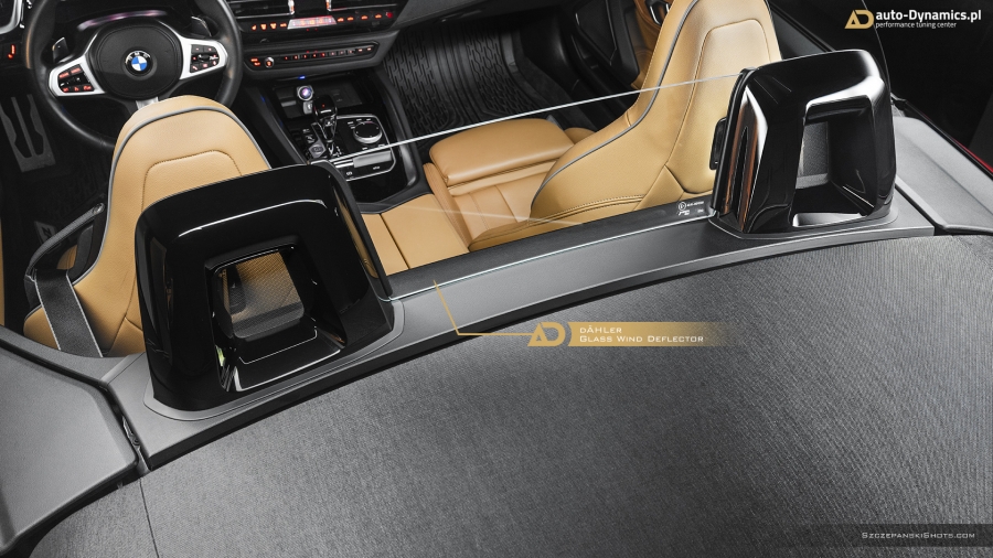 Następna faza tuningowej trawestacji G29 to instalacja dedykowanego deflektora wiatrowego. Wariant z bezpiecznego, homologowanego szkła zastąpił dość niewydolny, fabryczny element wykonany z materiałowej siatki. Deflektor dzięki swojej konstrukcji zapewnia przede wszystkim niwelację turbulencji wiatru wewnętrza przedziału pasażerskiego czyniąc podróż z otwartym dachem bardziej komfortową. Dodatkowo dzięki przezroczystości zapewnia dużo lepszą widoczność z perspektywy lusterka. Deflektor od naszego zaufanego, szwajcarskiego partnera – firmy dÄHLer. #BetterRoadsterByAD