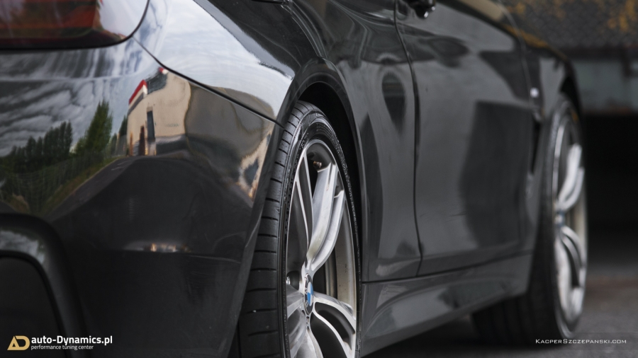Przy tym konkretnym egzemplarzu BMW 428i xDrive [F32 Coupe] mieliśmy już wcześniej sposobność pracować podczas montażu układu wydechowego Eisenmann, karbonowanego dyfuzora 3DDesign, filtra BMC oraz obręczy BBS [notka na naszym blogu – link]. Tym razem działania zespołu auto-Dynamics.pl koncentrowały się na poprawie właściwości trakcyjnych, prezencji oraz polepszeniu skuteczności fabrycznego układu hamulcowego.