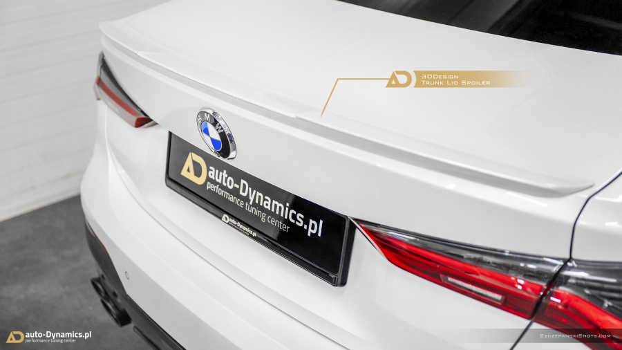Kolejny etap modyfikacyjnej metamorfozy to montaż spoilera pokrywy maski bagażnika pochodzącego od japońskiej, renomowanej, ekskluzywnej manufaktury – firmy 3DDesign specjalizującej się w projektowaniu i produkcji najwyższej jakości dodatków dla pojazdów BMW. „Lotka” wykonana została z materiału PU-RIM zatem przed instalacją została profesjonalnie wylakierowana w tożsamym do bazowego lakieru pojazdu kolorze - A96 Mineral-Weiss Metallic. Przepięknie nakreślone linię tylnego spoilera idealnie wpisują się i podkreślają linię coupé wynosząc odbiór tylnej części pojazdu na nowy, wyższy poziom. #BePerfectByAD