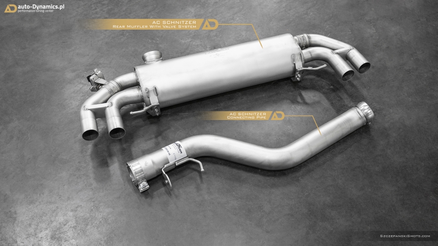 Radykalna poprawa barwy tonów emitowanych przez pojazdy uposażone fabrycznie w filtry OPF / GPF nie jest zadaniem prostym. Szczególnie w przypadku konieczności pozostawienia ów ekologicznych filtrów w nienaruszonej formie, choćby z tytułu szeregu aspektów gwarancyjnych tudzież homologacyjnych. Przemianowanie całkowicie wykastrowanej z akustyki przez uprzednio wspomniane filtry, jednostki B48O1ZIK rozpoczęliśmy od zastąpienia szalenie restrykcyjnego, seryjnego układu wydechowego – jego sportowym zamiennikiem pochodzącym od ekskluzywnego producenta specjalizującego się w tuningu pojazdów marki BMW – niemieckiej firmy AC Schnitzer. Zainstalowany w 430i przez zespół #AD układ wydechowy stanowi kompletacja zawierająca wysoko przepustowy, sportowy tłumik końcowy z zaimplementowanym systemem zaworów / przepustnic których pracą zawiaduje on-board’owy komputer BMW [eco / comfort – zawory zamknięte (tryb cichszy) i sport / sport+ - zawory otwarte (tryb głośniejszy)], dedykowana rura łącząca oraz cztery fenomenalnie prezentujące się końcówki wykończone w kolorze czarnej satyny które to jednocześnie idealnie wypełniły otwory w nowo zainstalowanym tylnym dyfuzorze który to AC Schnitzer dostarcza w pakiecie wraz z osłonami termo-izolacyjnymi oraz pozostałymi elementami umożliwiającymi bezproblemową konwersję systemu wydechowego z dwóch na cztery końcówki. Credo AC Schnitzer brzmi „Beyond The Standard” – ów dewiza idealnie odzwierciedla jakość i poziom akustyki oraz charakterystykę dźwięków generowanych przez wykonany z nierdzewnej stali kwasoodpornej układ wydechowy. Zdumiewająco poprawnie wyważony balans pomiędzy niskimi, średnimi jak i wysokimi tonami plasuje system niemieckiego tunera w ścisłej czołówce aftermaketowych systemów dedykowanych do BMW 430i [generacji G2X]. Pracujące w trybie zamkniętym zawory pozwalają w arcy-komfortowych warunkach pokonywać autostradowe odległości a tryb otwartych zaworów stanowi salwę nasyconych agresywną barwą, motoryzacyjnych dźwięków i tonów. Paralelnie, stylistycznie dodając szalenie indywidualnej, charakterystycznej, dynamicznie zorientowanej fizjonomii w tylnej ekspozyturze pojazdu. #PerfectionRedefinedByAD