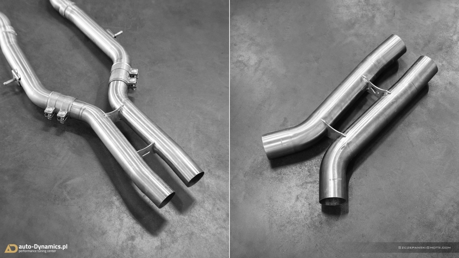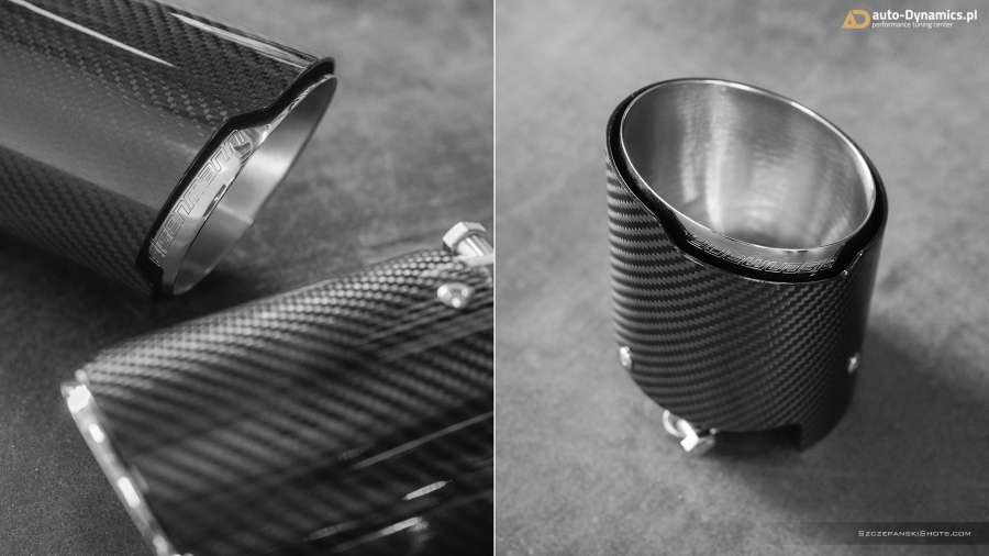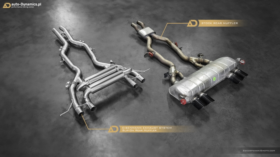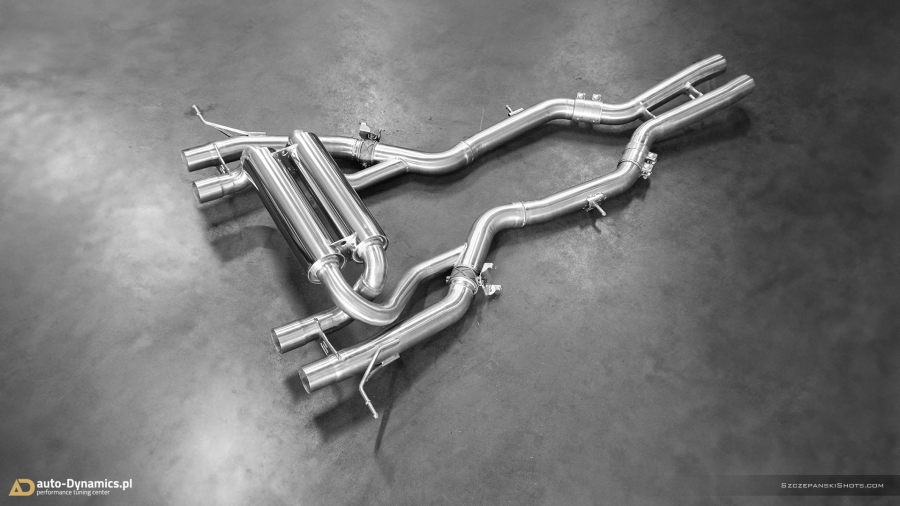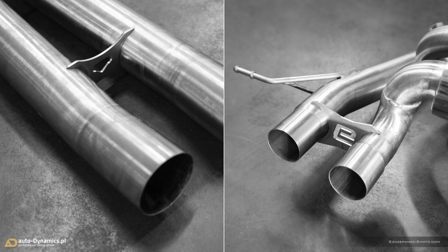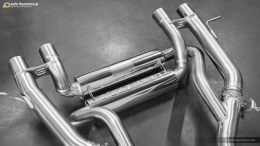Nad ów wyjątkowym egzemplarzem monachijskiego coupé mieliśmy w #AD sposobność pracować onegdaj [mods-Stage#1], koncentrując się wówczas na mechanicznej trawestacji systemu dolotowego oraz ingerencji w zawieszenie pojazdu skutkującej radykalną poprawą właściwości trakcyjnych w fuzji z ogólna poprawą „czucia” pojazdu podczas prowadzenia a rykoszetowo również z nutą stylistycznego indywidualizmu. Kontynuując modyfikacyjna historię, podczas obecnej audiencji, w ///M2 fabryczny, skrajnie nieestetyczny i obwarowany wielowątkowymi eko-kryteriami układ wydechowy ustąpił miejsca ultra wydajnemu, aftermarketowemu odpowiednikowi. Nie przebierając w środkach, BMW otrzymała zupełnie nowy, wysoko przepustowy, sportowy układ wydechowy od renomowanego producenta specjalizującego się od dziesięcioleci w projektowaniu i produkcji najwyższej jakości systemów wydechowych – niemieckiej firmy Eisenmann. Kompletacja systemu to pakiet rur łączących do seryjnej sekcji centralnej które to eliminują tłumik środkowy oraz bardzo lekki tłumik końcowy o całkowicie przeprojektowanej w stosunku do OEM strudze spalin w który to producent zaimplementował system zaworów / przepustnic oraz zestaw. Zwieńczenie całej konstrukcji stanowią cztery finezyjne, fenomenalnie prezentujące się końcówki z linii „Signature Sidecut Design” o potężnej średnicy 4 x Ø 110 mm wykonane podobnie jak cały system z nierdzewnej stali kwasoodpornej i powleczone w pełni karbonowym płaszczem [włókno węglowe] z finiszem na wysoki połysk. Układem elektronicznych zaworów / przepustnic systemu wydechowego Eisenmann zawiaduję zainstalowany podczas wcześniejszej wizyty [mods-Stage#1], profesjonalny, zewnętrzny sterownik. W najnowszych modelach BMW fabryczny sterownik otwiera przepustnice na maksymalnie 75% uchylenia [nawet w modelach M], ponadto przepustnice cały czas pracują w sposób dynamiczny [otwierają się i zamykają nawet w trybach sportowych]. Sterownik dÄHLer umożliwia ich pełne otwarcie nawet w trybach nie sportowych. A w trybie automatycznym, kontroler dÄHLer przywraca sterowanie klapami fabrycznemu, on-board’owemu sterownikowi BMW. Moduł posiada również wbudowaną pamięć więc nie zachodzi potrzeba każdorazowego wyboru trybu za pomocą pilota. Wartym do podkreślenia pozostaje ponadto fakt konstrukcji samego tłumika końcowego Eisenmann który to po instalacji nie wystaję poniżej linii tylnego zderzaka, czyniąc sam kanister tłumika kompletnie niewidocznym w przeciwieństwie do fabrycznego, szalenie nieestetycznego rozwiązania. Credo Eisenmann brzmi „Driven By Sound” – ów dewiza idealnie odzwierciedla jakość i poziom akustyki oraz charakterystykę dźwięków generowanych przez wykonany z nierdzewnej stali kwasoodpornej układ wydechowy. Zdumiewająco poprawnie wyważony balans pomiędzy niskimi, średnimi jak i wysokimi tonami plasuje system niemieckiego tunera w ścisłej czołówce aftermaketowych systemów dedykowanych do BMW M2 [generacji G87]. Pracujące w trybie zamkniętym zawory pozwalają w arcy-komfortowych warunkach pokonywać autostradowe odległości a tryb otwartych zaworów stanowi salwę nasyconych agresywną barwą, motoryzacyjnych dźwięków i tonów. Paralelnie, stylistycznie dodając szalenie i arcy indywidualnej, dynamicznie zorientowanej fizjonomii w tylnej ekspozyturze pojazdu. #PerfectCarByAD