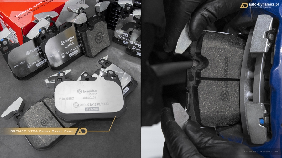 Sekundarny etap przekształcenia M235i stanowiły prace związane z systemem hamulcowym. W M-Performance’owych zaciskach zarówno osi przedniej jak i tylnej, zainstalowaliśmy zestaw ultra-wydajnych ale w dalszym ciągu zachowujących komfort codziennej eksploatacji, sportowych klocków hamulcowych z linii XTRA od niekwestionowalnego lidera w dziedzinie projektowania i produkcji najwydajniejszych układów hamulcowych, włoskiej firmy Brembo [dywizja Sport]. Wyczynowe klocki z serii XTRA współpracować będą z wcześniej zainstalowanymi przewodami hamulcowymi w stalowym oplocie [niemieckiej firmy Fischer Hydraulik] oraz wyczynowym płynem hamulcowym marki Millers. Konglomerat wszystkich zainstalowanych podzespołów przeistacza fabryczny system hamulcowy w niezawodne, maksymalizujące poziom bezpieczeństwa narzędzie którego praca przekłada się bezpośrednio na gwarancję spokoju, zarówno kierowcy jak i pasażerów.