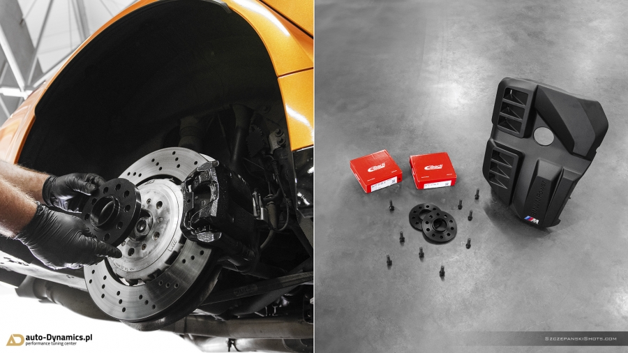 Final touch modyfikacji charakteryzujących się stylem OEM+ to montaż aluminiowych, czarnych dystansów poszerzających [niemieckiej firmy Eibach] wraz z kompletem adekwatnie dłuższych, czarnych śrub. Montaż pierścieni dystansujących pozwolił zrównać felgi z linią błotnika i idealnie wypełnić nadkola - stawiając tym samym przysłowiową „kropkę nad i” projektu ///M3. #OEM+byAD