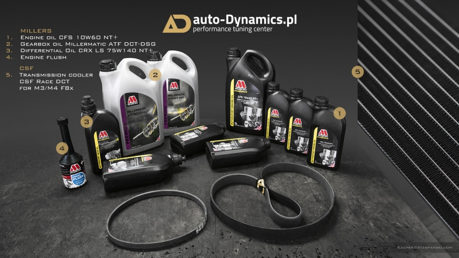 Celem maksymalnego wykorzystania właściwości i parametrów nowej chłodnicy oraz poprawy charakterystyki pracy i skuteczniejszej ochrony przekładni DCT / DKG, w całym układzie wymieniony został olej na wyczynową, wydajniejszą odmianę pochodzącą z palety produktów brytyjskiej firmy Millers - Millermatic ATF DCT-DSG, naturalnie w połączeniu z kompletem nowych [OEM BMW] podzespołów przewidzianych przez producenta do przeprowadzenia takowej procedury w dwusprzęgłowej skrzyni.