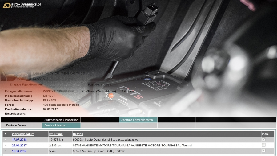Dopełniając metodykę oraz ścisłość reguł przeglądu, w „Competition²„ przeprowadziliśmy całkowitą, zaawansowaną diagnostykę komputerową oraz wszelkie wymagane adaptacje i regulacje. Wszystkie wykonane czynności przeglądowo-serwisowe, przy zachowaniu szczegółowych procedur i wytycznych BMW ///M oraz naszych wewnętrznych, wyśrubowanych standardów - potwierdzone zostały należytym wpisem w elektronicznym systemie centrali BMW AG, tworząc tym samym kompletną historię pojazdu w gwarancyjnej e-książce producenta.