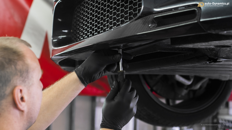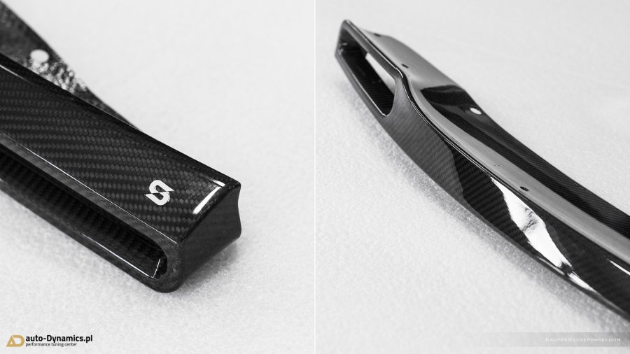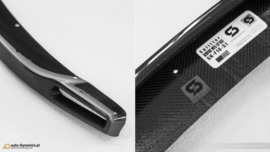 W BMW M5 zainstalowaliśmy idealnie wpisujący się w stylistykę zderzaka przedniego „Front Lip”. Spoiler wykonany w całości z najwyższej jakości włókna węglowego [pre preg carbon fiber] od renomowanego, europejskiego producenta – firmy Sterckenn.
