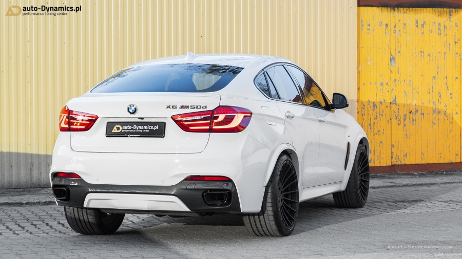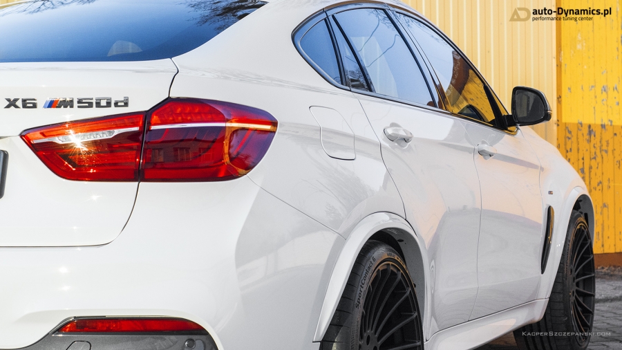 Idea poszerzonych, obniżonych, kolosalnych pojazdów zawsze wzbudza naszą aprobatę. Zwłaszcza, gdy do auto-Dynamics.pl trafia szalenie wdzięcznie przyjmujący profesjonalne modyfikacje, nowy egzemplarz BMW X6 M50d [F16].
