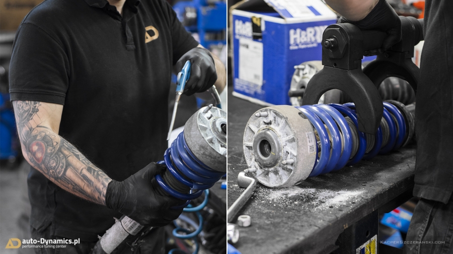 Trzecia faza prac, stanowiąca swoiste uzupełnienie całości, to modyfikacje w zakresie zawieszenia. Zestaw sportowych, usztywniających a zarazem obniżających sprężyn progresywnych i łączników od renomowanego, niemieckiego producenta – firmy H&R, zastąpił dość długie, seryjne sprężyny przednie. Tylna sekcja zawieszenia obniżona została za pomocą w pełni regulowanych cięgien [łączników] współpracujących z pneumatycznym systemem samopoziomującym. Komplet zawieszenia H&R, prócz znacznej poprawy prowadzenia, obniżenia środka ciężkości i „czucia” pojazdu - dzięki obniżeniu [-45mm oś przednia i -40mm oś tylna] nadał X6 [F16] znacznie atrakcyjniejszej aparycji przy jednoczesnym zachowaniu komfortu podczas codziennej eksploatacji a ponadto, obniżenie znakomicie uwypukliło potęgę obręczy Hamann czyniąc odczyt bryły pojazdu niebywale spójnym a jednocześnie arcy-agresywnym.