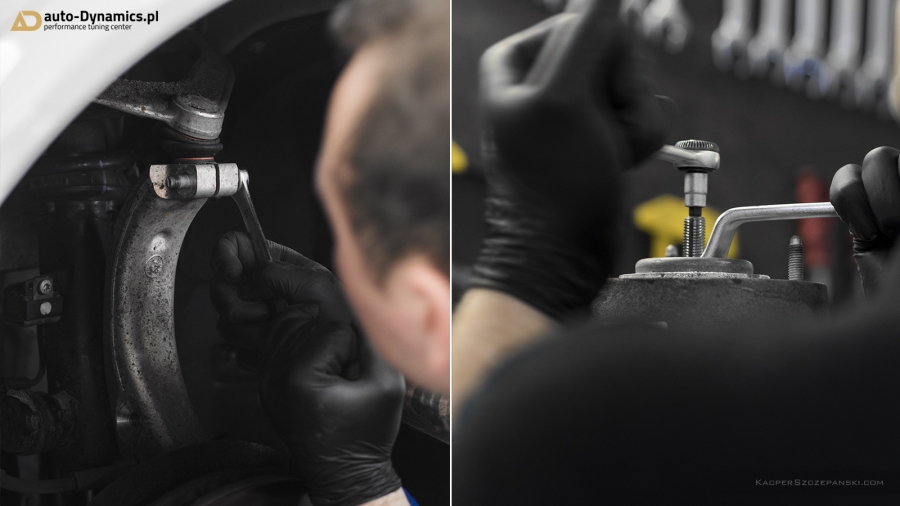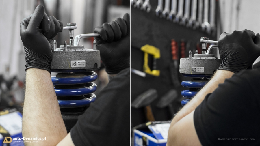 Kolejny, de facto koronny „stage” krystalizujący w pełni zdefiniowany koncept – montaż nowego zestawu kół. Kompletacja w postaci aluminiowych, 22 calowych felg firmy Hamann, model Anniversary Evo z serii „Black Line” w specyfikacji: 10,5” dla osi przedniej oraz 12” dla osi tylnej. Naturalnie, wraz z adekwatnym zestawem montażowym, który to idealnie wpisał osadzenie felg w dodatkowe poszerzenia błotników. Felgi wyposażone zostały w zestaw sportowych opon klasy high-performance – niemieckiej firmy Continental. Model SportContact 6 [295/30/22 przód oraz 335/25/22 tył] oraz w pakiet nowych, OEM’owych [BMW] czujników kontroli ciśnienia w oponach [TPMS / RDCI], które własnym sumptem, metodą proszkową wylakierowaliśmy w kolorze obręczy Hamann.