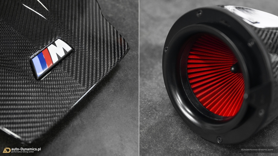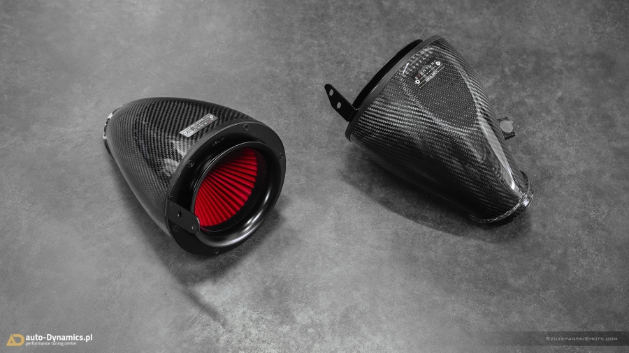 Ciąg dalszy tuningowej kompilacji stanowią zmiany wniesione w układ dolotowy poliftingowej wersji BMW X7. Nie przebierając w półśrodkach, sięgnęliśmy po top’owy, ultra wydajny i obłędnie prezentujący się, profesjonalny, sportowy układ dolotowy od renomowanego, brytyjskiego producenta – firmy Eventuri. System wykonany w całości z włókna węglowego [carbon fiber], eliminuje fabryczne, papierowe, panelowe filtry powietrza zapewniając jednocześnie maksymalizację dawki dopływu zimnego powietrza do turbosprężarek co w konsekwencji przekłada się na wzrost mocy i momentu obrotowego a także zapewnia niesamowite wrażenia akustyczne [dźwięk zasysanego powietrza]. Airbox’y jak i pozostałe elementy systemu dolotowego Eventuri wykonane są z najwyższej jakości włókien karbonizowanych. Materiał ten idealnie izoluje ciepło generowane przez silnik od filtrów powietrza. Zaimplementowane w cały, przeprojektowany system dolotu powietrza - sportowe, zbrojone filtry gwarantują doskonałe właściwości filtracyjne. Materiał zastosowany w filtrach to specjalna, zbrojona bawełna przechwytująca najmniejsze zanieczyszczenia. Ponadto, kompletację zainstalowanego przez #teamAD układu dolotowego, rozszerzyliśmy o pakiet karbonowych rur „Turbo Inlets” które to w sposób wręcz ekstremalny w stosunku do OEM, jeszcze bardziej śrubują efektywność całego układu Eventuri. Dodatkowo, nieobojętny pozostaje również fakt nowej, stylistycznej aranżacji komory silnika która to po montażu kompletnego systemu Eventuri prezentuje się teraz moto-fenomenalnie. Idealnie! #DeepBreathByAD
