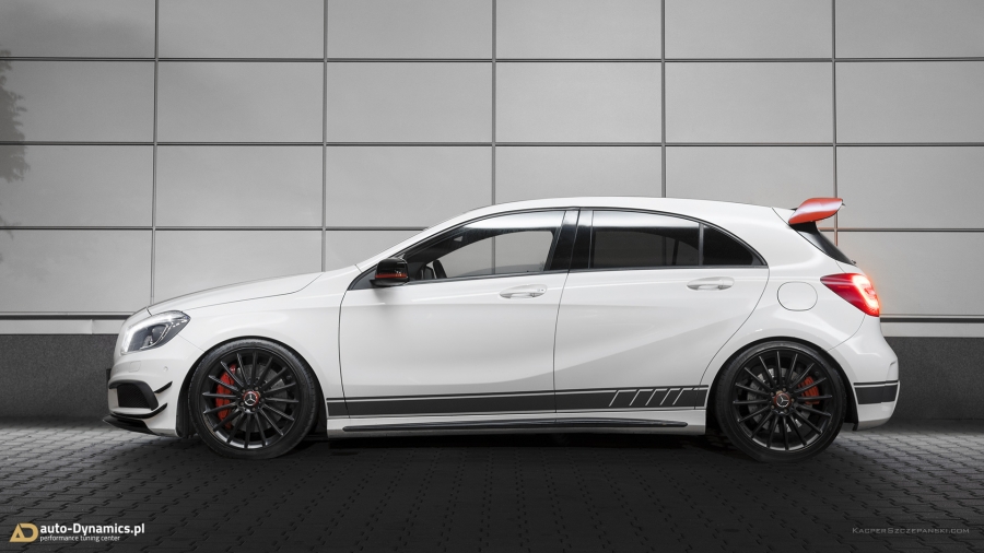 Stuttgarcki hot-hatch w wariacji „Edition 1” nacechowany przez specjalistyczną dywizję Aufrecht Melcher Großaspach z Affalterbach sportowo zorientowanymi właściwościami a ściślej - Mercedes Benz A45 AMG [W176] z wizytą w auto-Dynamics.pl mającą na celu radykalną i efektywną poprawę prowadzenia, intensyfikację atrybutów trakcyjnych oraz wzbogacenie parametrów jezdnych.