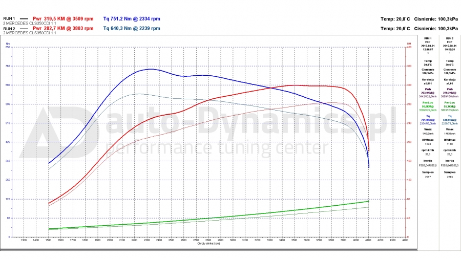 Finalna faza kończąca projekt to prace związane z przyrostem mocy i momentu obrotowego. Wyniki pomiaru seryjnych wartości na hamowni to 282KM i 640Nm [Wartości fabryczne podane przez Mercedes Benz to: 265KM i 620Nm]. W pojeździe zainstalowany został zaawansowany, cyfrowy moduł silnika z serii AD SporTronic® wraz z dedykowaną wiązką elektroniczną. Efekty zabiegu zmierzone na hamowni to 320KM i 750Nm. Przyrost wartości to +38KM i +110Nm.
