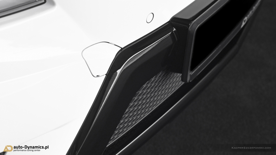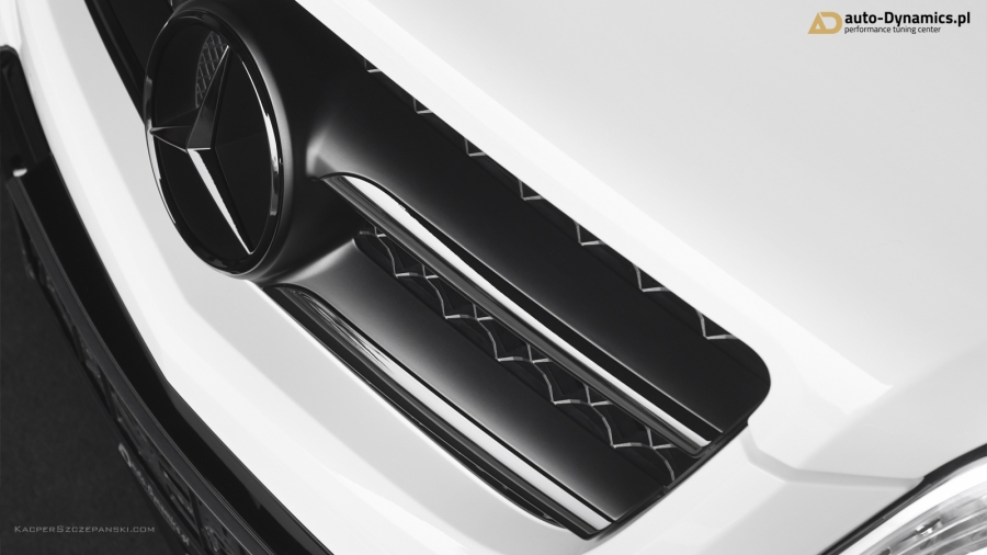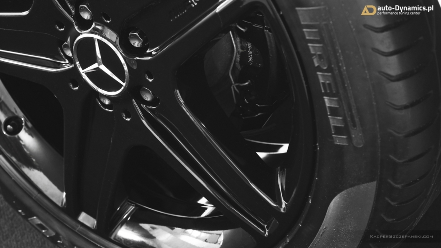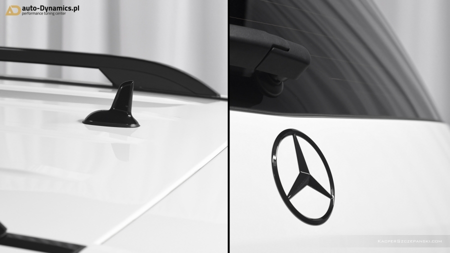 Koherentność, fuzja, jednolitość czy harmonia – to trafiające w punkt, terminy określające wizualną stronę zrealizowanego przez nas projektu. Stylizacja w stylu „Black & White” miała na celu eliminację, wszelkich, różnorodnie wykończonych przez fabrykę Mercedes-Benz elementów dekoracyjnych [szczególnie chromowanych]. Podzespoły zostały wylakierowane wielowarstwowo w odcieniu głębokiego, czarnego fortepianu [po wcześniejszym wytrawieniu chromu]. Na porowatych i matowych powierzchniach listew progowych po wcześniejszym wygładzeniu, również zagościł odcień tożsamej, jednolitej, pedantycznej czerni. Końcówki układu wydechowego, felgi – nic nie umknęło naszej uwadze. Efekt natężenia i intensywności koloru w konfrontacji do tak powszechnie stosowanych folii samochodowych jest absolutnie nieporównywalny.