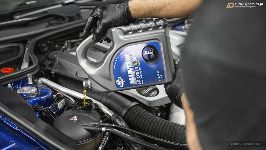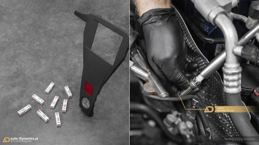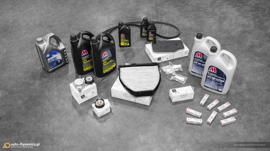 Skuteczna recepta zapewniająca perfekcyjną kondycję i długowieczną sprawność eksploatacyjną zmodyfikowanego na ponad 750KM pojazdu to częstsza dbałość o intensywniej użytkowane podzespoły mechaniczne auta. W auto-Dynamics.pl otaczamy profesjonalną opieką serwisową każdy pojazd w którym mieliśmy sposobność popełnić mniejsze lub większe modyfikacje, a goszczący u nas SL63 AMG stanowi idealny casus konstatujący przywołane powyżej fakty. Pokonując dystans pod postacią 20 000 [z krótkim, olejowym pitstop’em na silnikowe czynności serwisowe co 10 tys. km], absolutnie bezproblemowych i bezawaryjnych od procesu modyfikacji kilometrów, podczas audiencji w naszym serwisie, w pojeździe przeprowadziliśmy pełen profesjonalny serwis olejowy z wykorzystaniem zaufanych i niezawodnych olei firmy Millers, które znacznie przewyższają zadane przez stuttgarcką fabrykę normy a jednocześnie perfekcyjnie korespondują z wyśrubowanymi osiągami ekstremalnie zmodyfikowanego pojazdu. Wzmocnioną o +183KM jednostkę napędową w widlastym układzie V8 zapełniliśmy wysokiej klasy olejem z serii Motorsport, o specyfikacji 10W60 – CFS z NT+ w połączeniu z OEM filtrem MB. W przenoszącej więcej o +224 niutonometry przekładni AMG Speedshift Plus 7G-Tronic wymieniliśmy olej na nowy, bezkonkurencyjny XF Premium ATF MV-Extra naturalnie w fuzji z OEM’owy [AMG] pakietem filtrów dedykowanych do skrzyni biegów. Konsekwentnie w zespole napędowym tj. mechanizmie o ograniczonym poślizgu [LSD] zastosowaliśmy lubrykant Millers - CRX LS 75W140 NT+ nie zapominając o nowych o-ringach czy korkach spustowych / zamykających w dyferencjale. Kolejno, w ceramicznym układzie hamulcowym SL’a zagościł niemający sobie równych, wyczynowy płyn hamulcowy Millers - Racing Brake Fluid 320+ a w całym systemie odpowiedzialnym za prawidłowe chłodzenie jednostki napędowej o kodzie M157DE55AL zaaplikowaliśmy bardzo wydajny płyn marki Fuchs. Uwzględniając wcześniej przeprowadzone, mechaniczne modyfikacje, całkowicie oczyściliśmy i zakonserwowaliśmy wieczyste, ultra wydajne filtry powietrza firmy Weistec. „SL'owi” podczas serwisu zafundowaliśmy naturalnie zestaw OE AMG filtrów kabinowych [mikropyłowych – set] włącznie z pre-filtrem jak również szereg oryginalnych części i podzespołów wynikających z łącznego serwisu „A” i „B” dla MB takich jak komplet nowych świec zapłonowych, pasek klinowy wraz z rolką napinacza etc. Zweryfikowaliśmy również układ klimatyzacji paralelnie z innymi i pozostałymi systemami. Dopełniając metodykę oraz ścisłość reguł przeglądu, w SL63 AMG przeprowadziliśmy całkowitą, zaawansowaną diagnostykę komputerową [przy pomocy najnowocześniejszego oprogramowania firmy TEXA oraz BOSCH] oraz wszelkie wymagane adaptacje i regulacje. Wszystkie wykonane czynności przeglądowo-serwisowe, przy zachowaniu szczegółowych procedur i wytycznych Daimler AG oraz naszych wewnętrznych, wyśrubowanych standardów dla pojazdów przez nas zmodyfikowanych – gwarantują bezawaryjną i bezproblemową eksploatację pojazdu o zwiększonej mocy przez kolejne dziesiątki-tysięcy kilometrów. Niezależnie od okoliczności czy warunków drogowych. #ProvenByAD